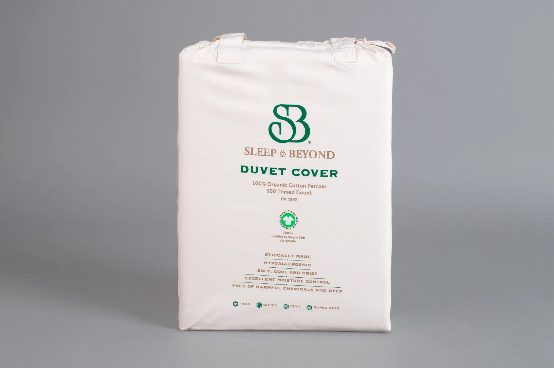 Fabric: certified organic cotton percale 270TC, pre-shrunk.