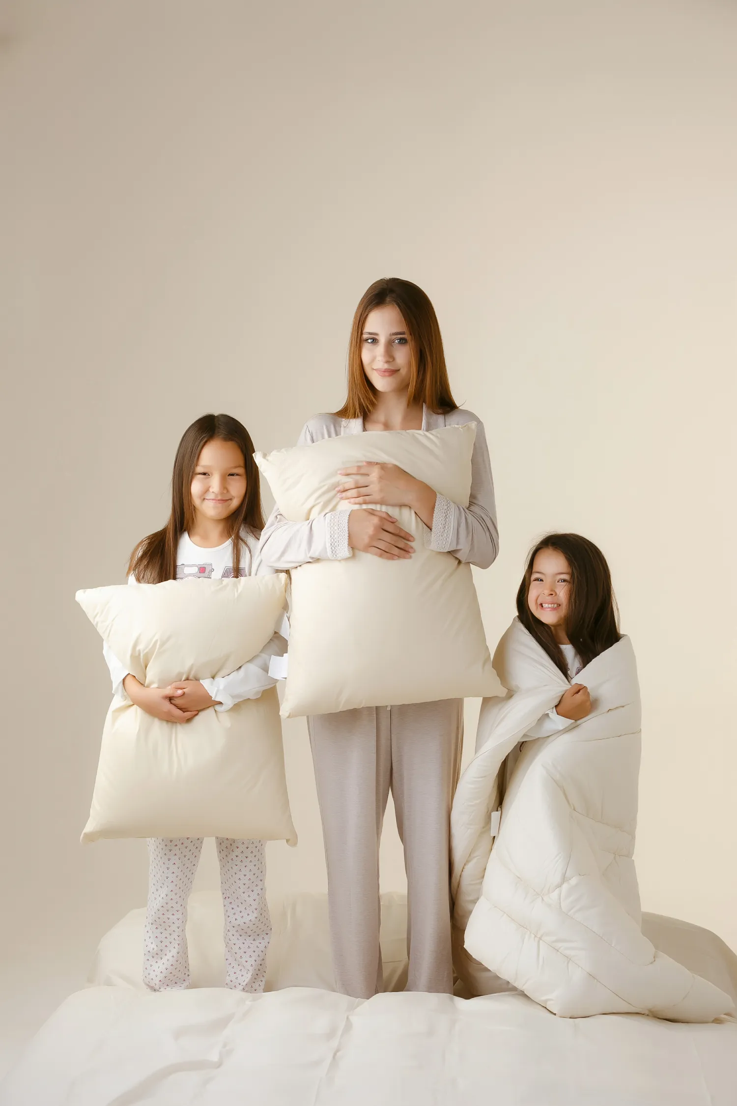 Weight: medium fill. Cover: certified organic cotton percale, 270TC, classic ivory. Fill: certified organic merino wool.